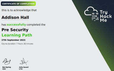 This certificate path gave me the necessary skills to understand basic penetration testing methodologies, tools, and tactics.